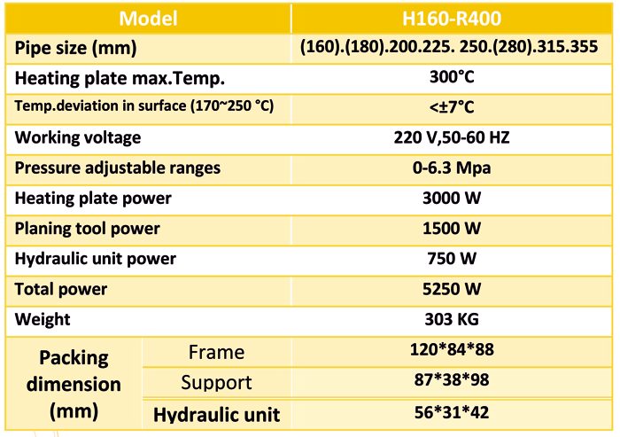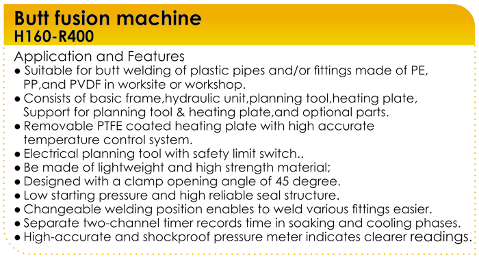 | مشخصات فنی دستگاه جوش پلی اتیلن تمام هیدرولیک 160 الی 400 |
