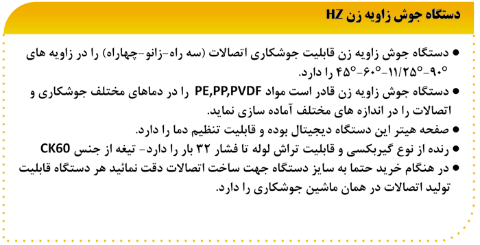 بهمن 21, 1399دستگاه جوش پلی اتیلن زاویه زن 630