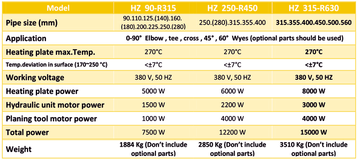 قابلیت جوش لوله واتصالات با مواد PE 100 – PE 80 – PP -PVDF را دارد .